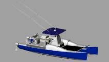 I know, I know, its not a sailboat. But since the launching of the new R33 14-foot wide boats hit the water here in Long Beach, allowing the boat to be put into a standard 35 foot slip, I recieved a lot of interest from some of my local buddies who are avid fisherman that wanted to see the R33 as a sportfisher. So, I decided to see what such a boat would look like. After talking and taking much advice from these semi-professional fisherman, the boat started to take shape. When I showed them the 3D boat drawings and told them it could sleep 2 people in two separate cabins with a head and ice box in each hull, that with twin 25-35 hp motors the boat will achieve 18-22 knots and get 6-8 miles per gallon, and it could come either with a trailerable 86 beam or slippable 12 to 14 foot beam. We will be testing the first proto-type in April.