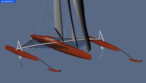 The project is currently on hold as we get the new 2005 R33 in production and set up our dealer newtork. We have been sailing the Hobie Trifoiler in extreme conditions learning what it will do in a larger version in larger seas. The testing has been quite encouraging as the Tri-foiler has shown to be quite seaworthy for such a spindly looking craft. There has been two RC models already built to test the new foil and sensor designs and it has proved to be very successful! Keep looking for updates!
