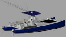 I know, I know, its not a sailboat. But since the launching of the new R33 14-foot wide boats hit the water here in Long Beach, allowing the boat to be put into a standard 35 foot slip, I recieved a lot of interest from some of my local buddies who are avid fisherman that wanted to see the R33 as a sportfisher. So, I decided to see what such a boat would look like. After talking and taking much advice from these semi-professional fisherman, the boat started to take shape. When I showed them the 3D boat drawings and told them it could sleep 2 people in two separate cabins with a head and ice box in each hull, that with twin 25-35 hp motors the boat will achieve 18-22 knots and get 6-8 miles per gallon, and it could come either with a trailerable 86 beam or slippable 12 to 14 foot beam. We will be testing the first proto-type in April.